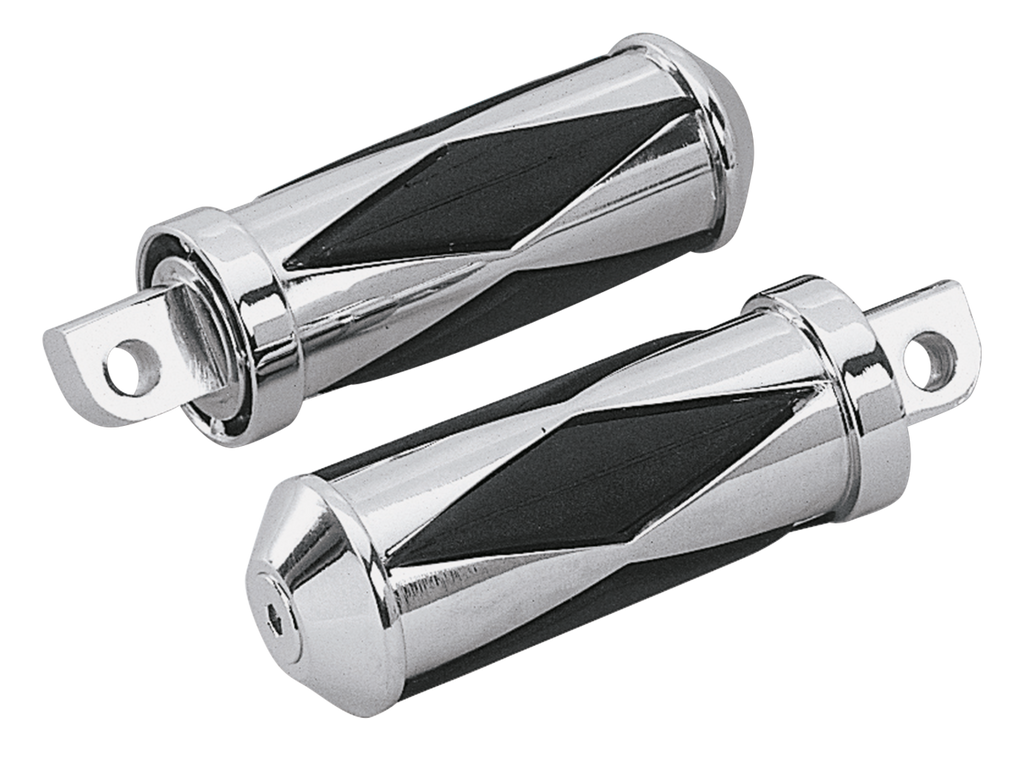Diamond foot pegs, also known as footrests, feature a rubber inlaid insert with a chrome body. These Genuine Zodiac pegs are stronger than most the same looking pegs on the market but still cannot be used as a kickstart pedal.