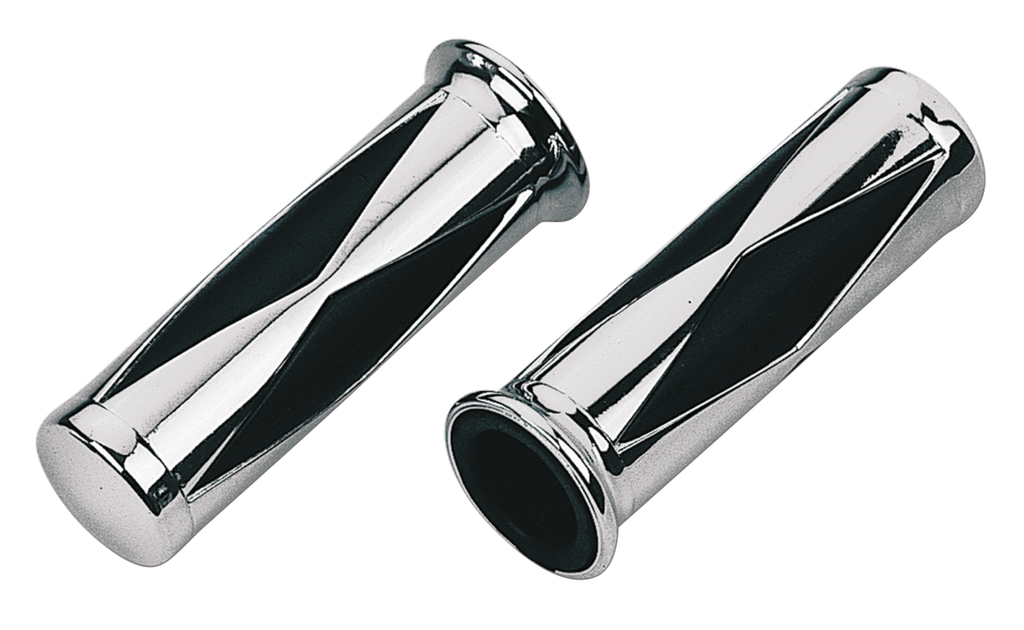 In addition to our range of our Diamond foot pegs, we also offer this grip set in the same design for the finishing touch. Features thick one piece rubbers inside to absorb vibrations and brightly chromed sleeves.