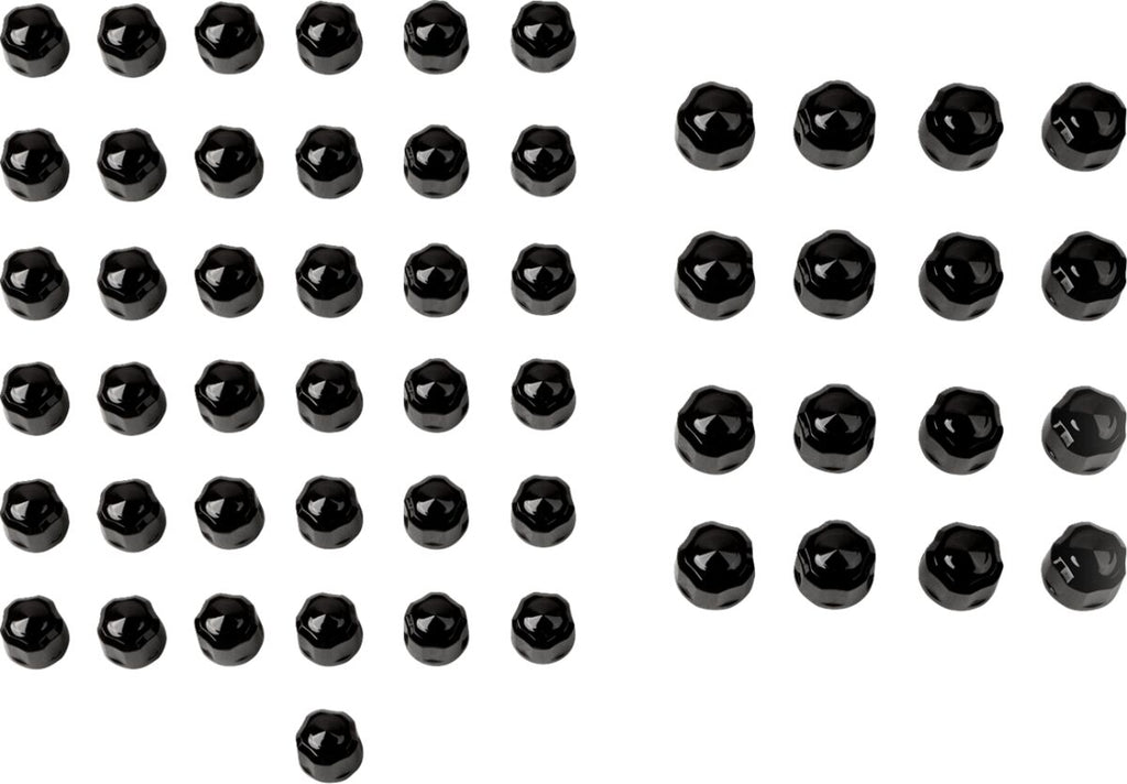 Engine Bolt Cover CapsMade from strong ABS composite that is designed to handle the engine heat and to be removed and reinstalled when needed Precision fit and simple press-on installation Cover up old, dull or rusty bolts Will not rust like a steel cap No silicone needed Kit includes: