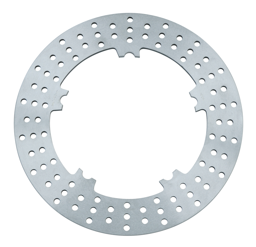 These top quality disc brake rotors are a bolt-on replacement for OEM. Rotors are precision ground to provide the ultimate braking power. Discs are 111/2" in diameter and sold each. Fits all V-Rod models 2002-2005 (OEM 44343-01).