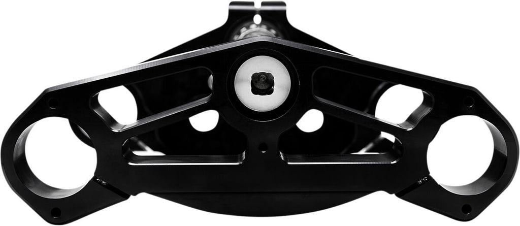 49 mm FLH Triple Tree SetUsed when converting a 41 mm front fork assembly to 49 mm CNC-machined 6061-T6 aluminum upper and lower trees (stock rake) Stainless steel stem Accepts stock risers and bushings, neck post bearings, dust shields, adjuster nut and stem nut No fork lock or fork stops Made in USA Requires the relocation of the ignition switch. These kits require the use of complete '14+ style 49 mm fork assembly, wheel assembly, rotor/caliper assemblies and front fender (not included). Will eliminate gauge housing and cover on FLTR models. Will eliminate inner fairing cap on FLHT/FLHX models. Not for use with fork boot covers/sliders. Installation of these parts does not allow remounting of headlight nacelle. Harley Davidson FLHR 1450 1999-2006 Harley Davidson FLHRC 1584 2009-2010 Harley Davidson FLHRC 1584 ABS 2009-2011 Harley Davidson FLHRC 1690 ABS 2011-2013 Harley Davidson FLHRCI 1450 EFI 2004-2006 Harley Davidson FLHRI 1450 EFI 1999-2006 Harley Davidson FLHRS 1450 2004-2006 Harley Davidson FLHRSE3 1800 2007 Harley Davidson FLHRSE4 1800 ABS 2008 Harley Davidson FLHRSE5 1800 ABS 2013 Harley Davidson FLHRSEI 1550 2002 Harley Davidson FLHRSEI2 1690 2003 Harley Davidson FLHT 1450 1999-2006 Harley Davidson FLHTC 1450 2002-2005 Harley Davidson FLHTCI 1450 EFI 1999-2006 Harley Davidson FLHTCSE 1690 EFI 2004 Harley Davidson FLHTCSE2 1690 EFI 2005 Harley Davidson FLHTCUI 1450 EFI 1999-2006 Harley Davidson FLHTCUSE 1690 2006 Harley Davidson FLHTCUSE2 1800 2007 Harley Davidson FLHTCUSE3 1800 ABS 2008 Harley Davidson FLHTCUSE4 1800 ABS 2009 Harley Davidson FLHTCUSE5 1800 ABS 2010 Harley Davidson FLHTCUSE6 1800 ABS 2011 Harley Davidson FLHTCUSE7 1800 ABS 2012 Harley Davidson FLHTCUSE8 1800 ABS 2013 Harley Davidson FLHTI 1450 EFI 2004-2006 Harley Davidson FLHTK 1584 ABS 2010-2011 Harley Davidson FLHTK 1690 ABS 2011-2013 Harley Davidson FLHX 1450 2006 Harley Davidson FLHXI 1450 EFI 2006 Harley Davidson FLHXSE 1800 ABS 2010 Harley Davidson FLHXSE2 1800 ABS 2011 Harley Davidson FLHXSE3 1800 ABS 2012