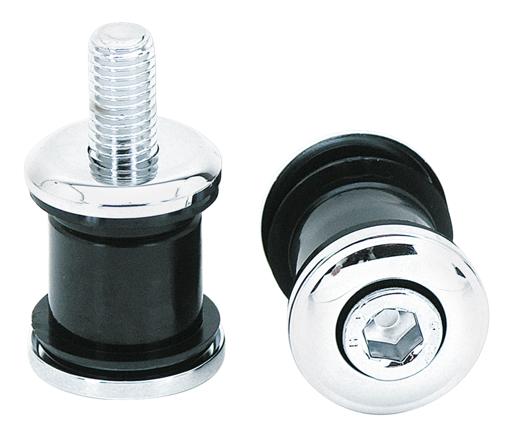 For extra clean looks of your handlebar mount. These chrome handlebar damper kits feature flush mounted 1/2-13x2 1/4" UNC Allen head bolts, black rubber bushings and chrome washers. Fits 1973-1984 FL & FX, 1982-1994 FXR, 1973-2003 Sportster, 1991-2017 Dyna, 1986-2017 Softail (except Springers). Sold in kits of 2.