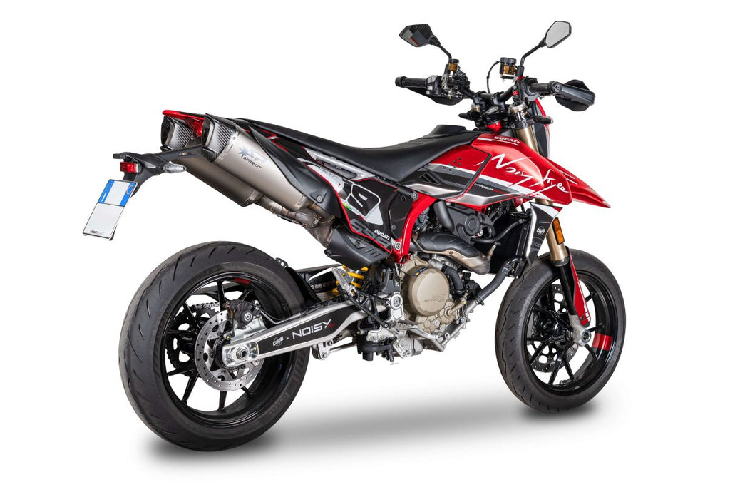FORCE EVO Slip-On MufflerSPARK FORCE EVO Silencer with carbon fiber endcap The new evolution of the iconic Force silencer is a perfect blend of energy and elegance Design is aggressive and refined at the same time Upgraded and streamlined by a groove on the titanium case that converges towards the lines of the carbon end cap. The Spark proposal is characterised by the use of premium materials, distinctive styling and full Euro5 compliance: high performance, ready to use, without the need for additional modifications. Ducati HYPERMOTARD 698 ABS 2024-2026
