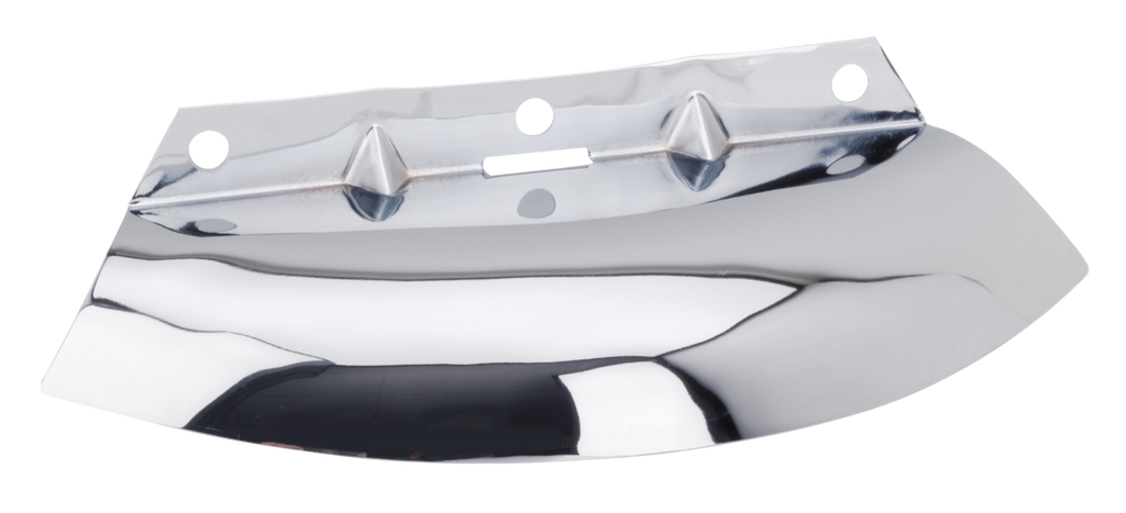 Show-chrome fork air baffle bolts straight to the lower triple tree on most 1979 thru 2000 FLH and FLT models.