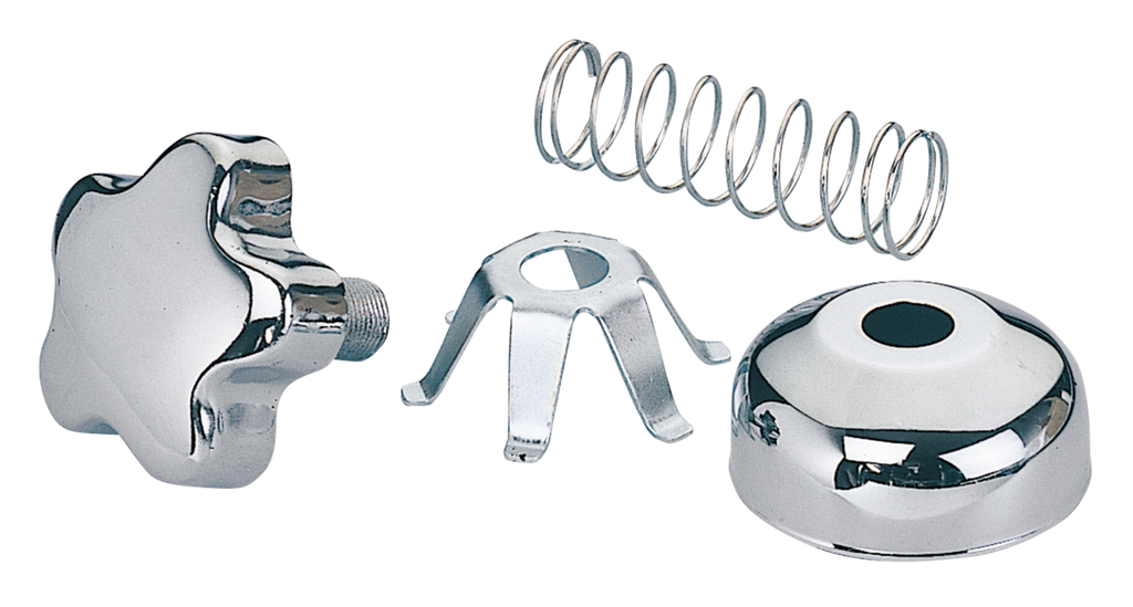 Knob, coil spring, spider spring and spider spring cover in a convenient kit. Fits Hydra Glide front forks on 4-speed FL 1949 to early 1977, chrome finish.