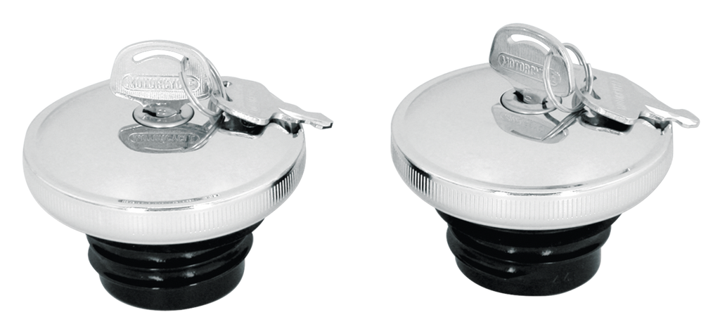 Lockable gas caps with ribbed sides and show quality chrome finish. The lock system prevents for the gas caps coming loose with the engine running. Fits all 1982-2017 fuel tanks with Screw-In style caps. The vented version fits on models with a single gas cap, as well as on the right side on models with dual gas caps. The non-vented version fits on the left side of models with dual gas caps. Vented and non-vented caps are sold in sets as well as individually.