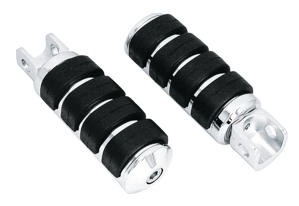 Cat Paw foot pegs, also known as footrests, feature unique soft rubber pads to reduce vibrations. These rubbers are cat paw shaped and isolastic mounted on a chrome socket head screw and yoke stem. These footrests have steel inserts and are stronger than most the same looking pegs on the market but still cannot be used as a kickstart pedal.