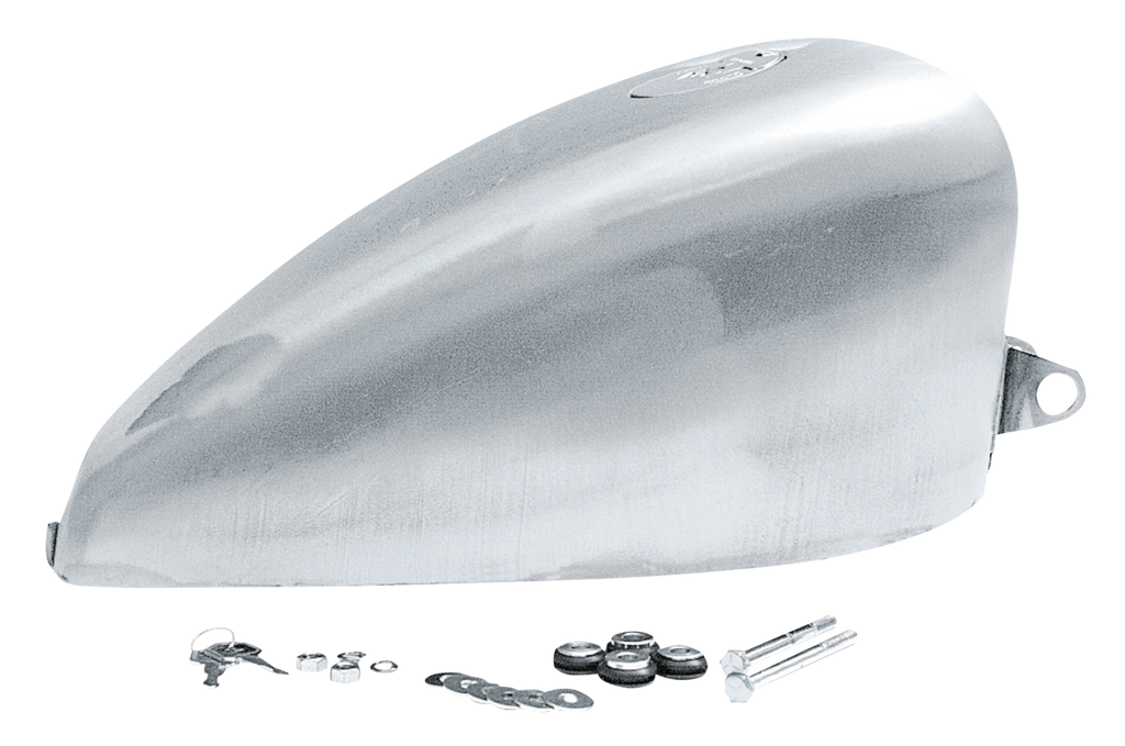 Zodiac's King Size tanks for Sportster models have been a popular choice of Custom bike builders for many years. Through the years it has become the "classic" choice for those who want the mileage. We up-graded this classic "King Sportster" gas tank with rubber mounts to isolate it from the engine vibration, and add four style gas caps, being the stock style Screw-In, the Quick Cam lockable flush mount, a chrome plated lockable Midi Aero-style aluminum gas cap and the latest Pop-up gas cap in a paintable as well as a chrome plated finish. Except for the stock style Screw-In type tanks, gas caps are included with the tanks. Will bolt to the Stock frame mounts. Available for 1982 thru 2003 Sportster including the Evolution Sportster. Has larger than stock fuel capacity for extra mileage. Holds approx. 3.1 gallon (11,7L.).