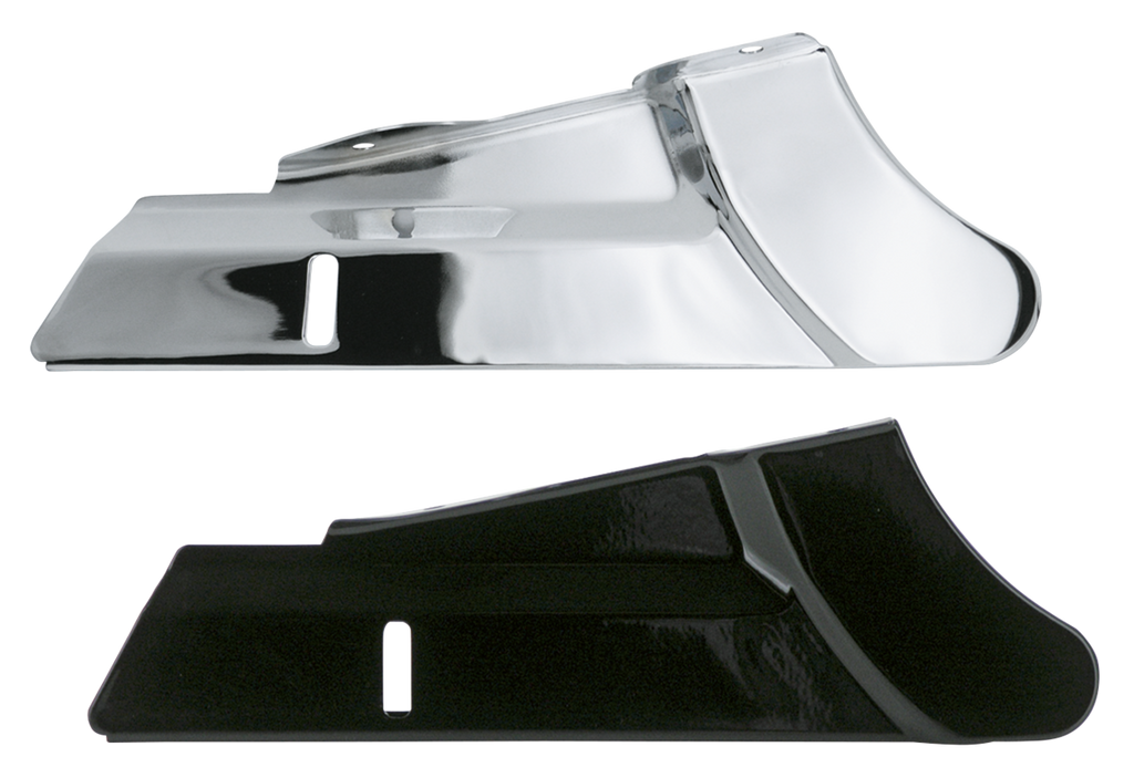 These lower belt guards for all 1997 to present FLH and FLT series Touring, are very easy to install as they are a perfect fit over the Original Equipment belt guard. Zodiac has them in chrome and in black.