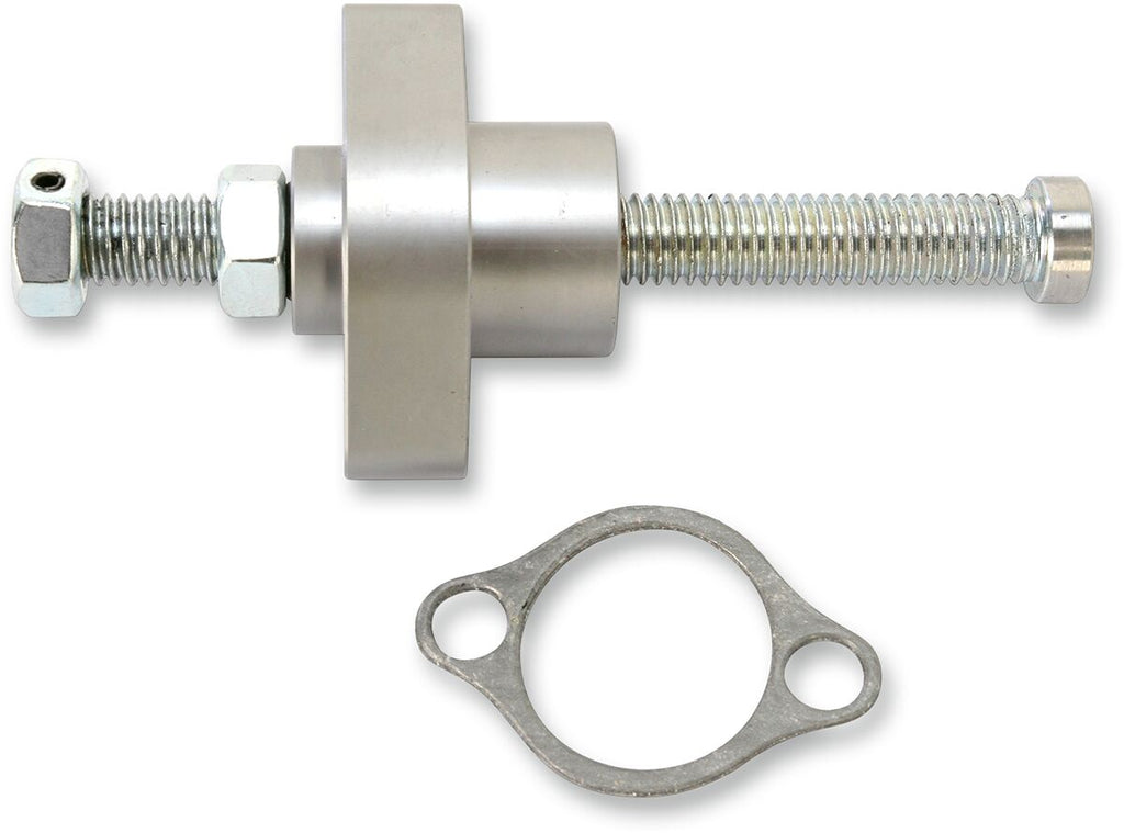 Manual Cam Chain TensionerCNC-machined from billet aluminum with a gunmetal finish Replaces OEM automatic/hydraulic tensioner Eliminates out-of-timing problems caused by the OEM automatic tensioner Eliminates excess tension/premature engine wear caused by OEM hydraulic tensioner Eliminates cam chain rattling caused by factory tensioner failure Honda CRF 450 R 2002-2003