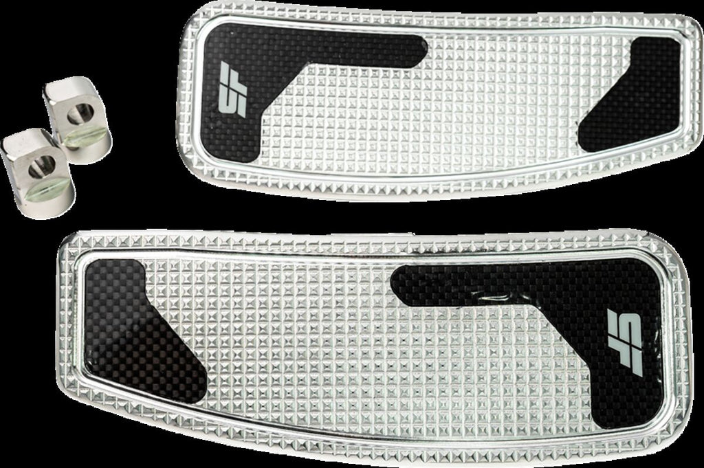 Mini FloorboardsMini floorboards sold in pairs are constructed of billet aluminum with diamond cut Billet aluminum with stainless steel mounting clevis Carbon fiber insert covered with TPU film protection for durability and a lasting finish Models with passenger footpegs will require the use of OEM accessory floorboard mounts. Harley Davidson E 1000 1936-1952 Harley Davidson EL 1000 1936-1952 Harley Davidson ELF 1000 1952 Harley Davidson F 1200 1946-1952 Harley Davidson FL 1200 1941-1977 Harley Davidson FLB 1200 1965-1969 Harley Davidson FLD 1690 2012-2013 Harley Davidson FLD 1690 ABS 2012-2016 Harley Davidson FLE 1200 1953-1956 Harley Davidson FLEF 1200 1953-1956 Harley Davidson FLF 1200 1952-1964 Harley Davidson FLFB 1200 1965-1969 Harley Davidson FLH 1984-1985 Harley Davidson FLH 1200 1955-1980 Harley Davidson FLH 1340 1979-1984 Harley Davidson FLH 1868 ABS 2021 Harley Davidson FLHB 1200 1965-1969 Harley Davidson FLHC 1979 Harley Davidson FLHC 1340 1980-1983 Harley Davidson FLHF 1200 1955-1964 Harley Davidson FLHFB 1200 1965-1969 Harley Davidson FLHFB 1868 ABS 2023 Harley Davidson FLHR 1340 1994-1998 Harley Davidson FLHR 1450 1999-2006 Harley Davidson FLHR 1584 2007-2011 Harley Davidson FLHR 1584 ABS 2008-2011 Harley Davidson FLHR 1690 2012-2015 Harley Davidson FLHR 1690 ABS 2012-2016 Harley Davidson FLHR 1750 2019 Harley Davidson FLHR 1750 2017-2018 Harley Davidson FLHR 1750 ABS 2017-2022 Harley Davidson FLHRC 1450 2004 Harley Davidson FLHRC 1584 2007-2010 Harley Davidson FLHRC 1584 ABS 2008-2011 Harley Davidson FLHRC 1690 ABS 2011-2016 Harley Davidson FLHRC 1750 ABS 2017-2019 Harley Davidson FLHRCI 1340 EFI 1998 Harley Davidson FLHRCI 1450 EFI 1999-2006 Harley Davidson FLHRI 1340 EFI 1996-1997 Harley Davidson FLHRI 1450 EFI 1999-2006 Harley Davidson FLHRS 1450 2004-2006 Harley Davidson FLHRS 1584 2007 Harley Davidson FLHRSE3 1800 2007 Harley Davidson FLHRSE4 1800 ABS 2008 Harley Davidson FLHRSE5 1800 ABS 2013 Harley Davidson FLHRSE6 1800 ABS 2014 Harley Davidson FLHRSEI 1550 2002 Harley Davidson FLHRSEI2 1690 2003 Harley Davidson FLHRSI 1450 EFI 2004-2006 Harley Davidson FLHRXS 1750 ABS 2017-2018 Harley Davidson FLHRXS 1868 ABS 2019-2024 Harley Davidson FLHS 1200 1979-1980 Harley Davidson FLHS 1340 1987-1994 Harley Davidson FLHT 1340 1983-1998 Harley Davidson FLHT 1450 1999-2006 Harley Davidson FLHT 1584 2007-2010 Harley Davidson FLHT 1584 ABS 2008-2010 Harley Davidson FLHT 1750 ABS 2019-2022 Harley Davidson FLHTC 1340 1983-1998 Harley Davidson FLHTC 1450 2002-2005 Harley Davidson FLHTC 1584 2007-2011 Harley Davidson FLHTC 1584 ABS 2009-2011 Harley Davidson FLHTC 1690 2012-2013 Harley Davidson FLHTC 1690 ABS 2011-2013 Harley Davidson FLHTCI 1340 EFI 1996-1998 Harley Davidson FLHTCI 1450 EFI 1999-2006 Harley Davidson FLHTCSE 1690 EFI 2004 Harley Davidson FLHTCSE2 1690 EFI 2005 Harley Davidson FLHTCU 1340 1989-1997 Harley Davidson FLHTCU 1584 2007-2011 Harley Davidson FLHTCU 1584 ABS 2008-2011 Harley Davidson FLHTCU 1690 2012-2013 Harley Davidson FLHTCU 1690 ABS 2012-2016 Harley Davidson FLHTCU 1750 ABS 2017-2019 Harley Davidson FLHTCUI 1340 EFI 1995-1998 Harley Davidson FLHTCUI 1450 EFI 1999-2006 Harley Davidson FLHTCUL 1690 ABS 2015-2016 Harley Davidson FLHTCUSE 1690 2006 Harley Davidson FLHTCUSE2 1800 2007 Harley Davidson FLHTCUSE3 1800 ABS 2008 Harley Davidson FLHTCUSE4 1800 ABS 2009 Harley Davidson FLHTCUSE5 1800 ABS 2010 Harley Davidson FLHTCUSE6 1800 ABS 2011 Harley Davidson FLHTCUSE7 1800 ABS 2012 Harley Davidson FLHTCUSE8 1800 ABS 2013 Harley Davidson FLHTE 1340 1984 Harley Davidson FLHTI 1450 EFI 2004-2006 Harley Davidson FLHTK 1584 ABS 2010-2011 Harley Davidson FLHTK 1690 ABS 2011-2016 Harley Davidson FLHTK 1750 ABS 2017-2018 Harley Davidson FLHTK 1868 ABS 2019-2024 Harley Davidson FLHTKL 1690 ABS 2015-2016 Harley Davidson FLHTKL 1750 ABS 2017-2018 Harley Davidson FLHTKL 1868 ABS 2019 Harley Davidson FLHTKSE 1800 ABS 2014-2016 Harley Davidson FLHTKSE 1868 ABS 2017 Harley Davidson FLHTKSE 1923 ABS 2018-2021 Harley Davidson FLHX 1340 1984-1985 Harley Davidson FLHX 1450 2006 Harley Davidson FLHX 1584 2007-2011 Harley Davidson FLHX 1584 ABS 2008-2011 Harley Davidson FLHX 1690 2011-2016 Harley Davidson FLHX 1690 ABS 2011-2016 Harley Davidson FLHX 1750 2019 Harley Davidson FLHX 1750 2017-2018 Harley Davidson FLHX 1750 ABS 2017-2023 Harley Davidson FLHXI 1450 EFI 2006 Harley Davidson FLHXS 1690 ABS 2014-2016 Harley Davidson FLHXS 1750 ABS 2017-2018 Harley Davidson FLHXS 1868 ABS 2019-2023 Harley Davidson FLHXSE 1800 ABS 2010-2016 Harley Davidson FLHXSE 1868 ABS 2017 Harley Davidson FLHXSE 1923 ABS 2018-2022 Harley Davidson FLHXSE 1977 ABS 2023 Harley Davidson FLHXSE2 1800 ABS 2011 Harley Davidson FLHXSE3 1800 ABS 2012 Harley Davidson FLHXST 1923 ABS 2022-2023 Harley Davidson FLT 1340 1980-1984 Harley Davidson FLTC 1340 1980-1991 Harley Davidson FLTCU 1340 1989-1996 Harley Davidson FLTR 1450 1999-2003 Harley Davidson FLTR 1584 2007-2010 Harley Davidson FLTR 1584 ABS 2009-2010 Harley Davidson FLTRI 1340 EFI 1998 Harley Davidson FLTRI 1450 EFI 1999-2006 Harley Davidson FLTRK 1868 ABS 2020-2024 Harley Davidson FLTRKSE 1923 ABS 2022-2023 Harley Davidson FLTRSE3 1800 ABS 2009 Harley Davidson FLTRSEI 1550 2000 Harley Davidson FLTRSEI2 1550 2001 Harley Davidson FLTRU 1584 ABS 2011 Harley Davidson FLTRU 1690 ABS 2011-2016 Harley Davidson FLTRU 1750 ABS 2017-2018 Harley Davidson FLTRU 1868 ABS 2019 Harley Davidson FLTRUSE 1800 ABS 2011 Harley Davidson FLTRUSE2 1800 ABS 2015-2016 Harley Davidson FLTRX 1584 2010-2011 Harley Davidson FLTRX 1584 ABS 2010-2011 Harley Davidson FLTRX 1690 2011-2016 Harley Davidson FLTRX 1690 ABS 2011-2016 Harley Davidson FLTRX 1750 2017-2018 Harley Davidson FLTRX 1750 2019 Harley Davidson FLTRX 1750 ABS 2017-2023 Harley Davidson FLTRXS 1690 ABS 2015-2016 Harley Davidson FLTRXS 1750 ABS 2017-2018 Harley Davidson FLTRXS 1868 ABS 2019-2023 Harley Davidson FLTRXSE 1800 ABS 2012 Harley Davidson FLTRXSE 1923 ABS 2018-2022 Harley Davidson FLTRXSE 1977 ABS 2023-2024 Harle