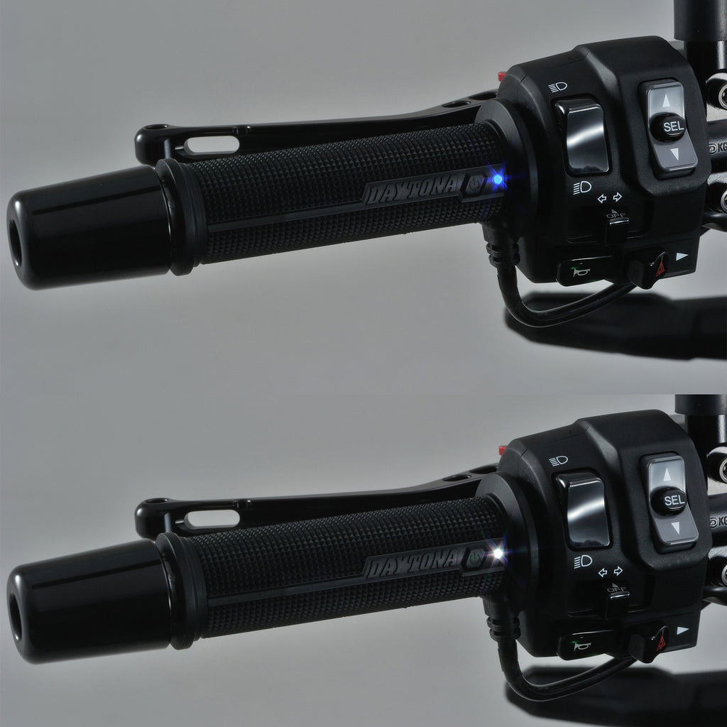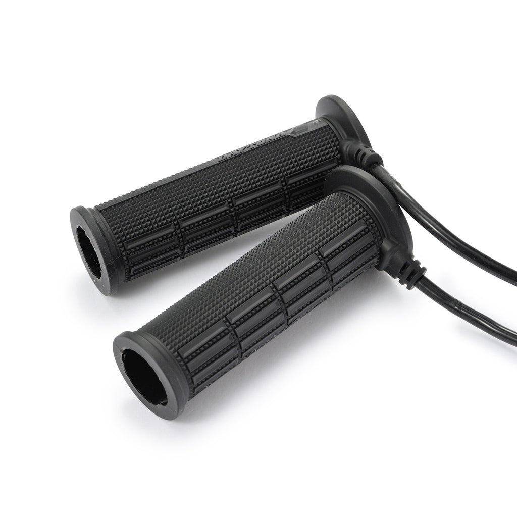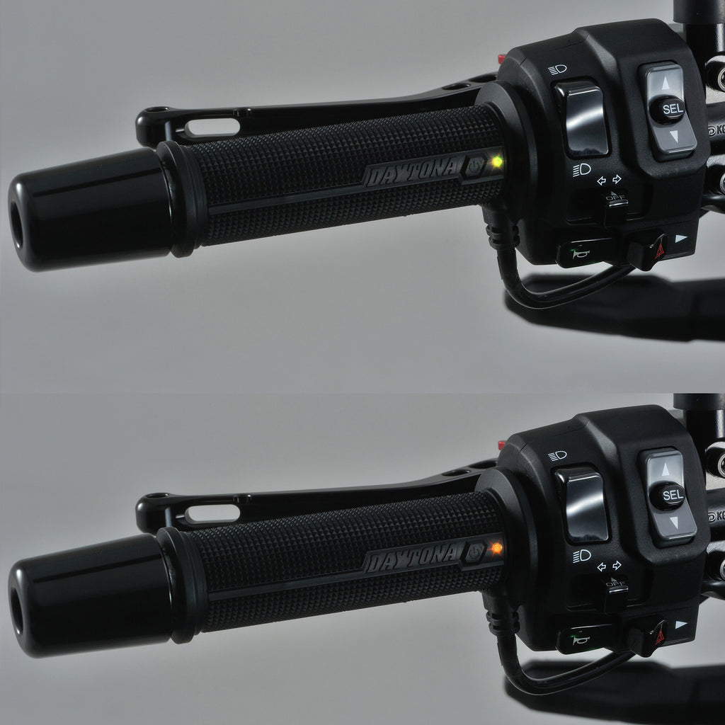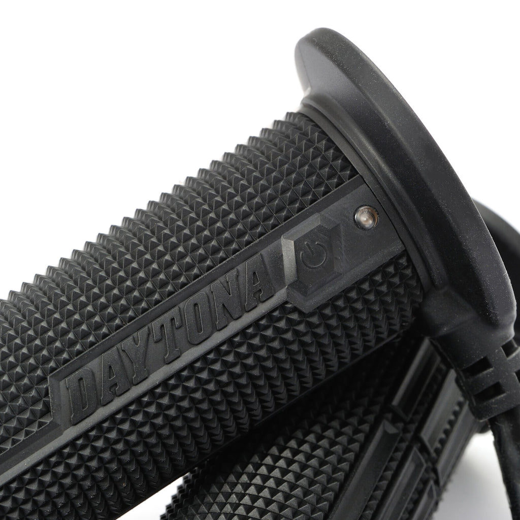 Premium Daytona heated grips - performance Japanese design. Daytona heated grips provide unrivalled heating performance in cold conditions, the Quick Heating function taking just four minutes. An integral switch on the left-hand grip enables easy operation and temperature adjustment when riding between the 4-Levels of heating. Fully intelligent operation by heat level memory and recall function. Only for use on 12V scooters and motorcycles.