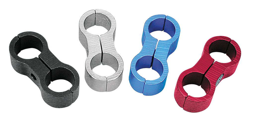 Beautifully anodized oil/fuel line sepa­rators, in a variety of four different colors. Separators have 5/8" (16mm) holes for either neoprene or braided oil and fuel lines. For neatly routing the oil/fuel lines on your motorcycle. Sold each.