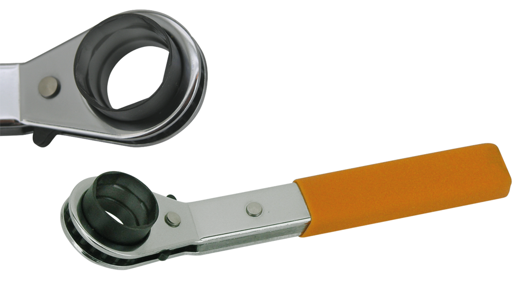 Special reversible ratcheting wrenches, designed to do a specific job. Feature ergonomic vinyl grips that also prevent from scratching or marring the bike.