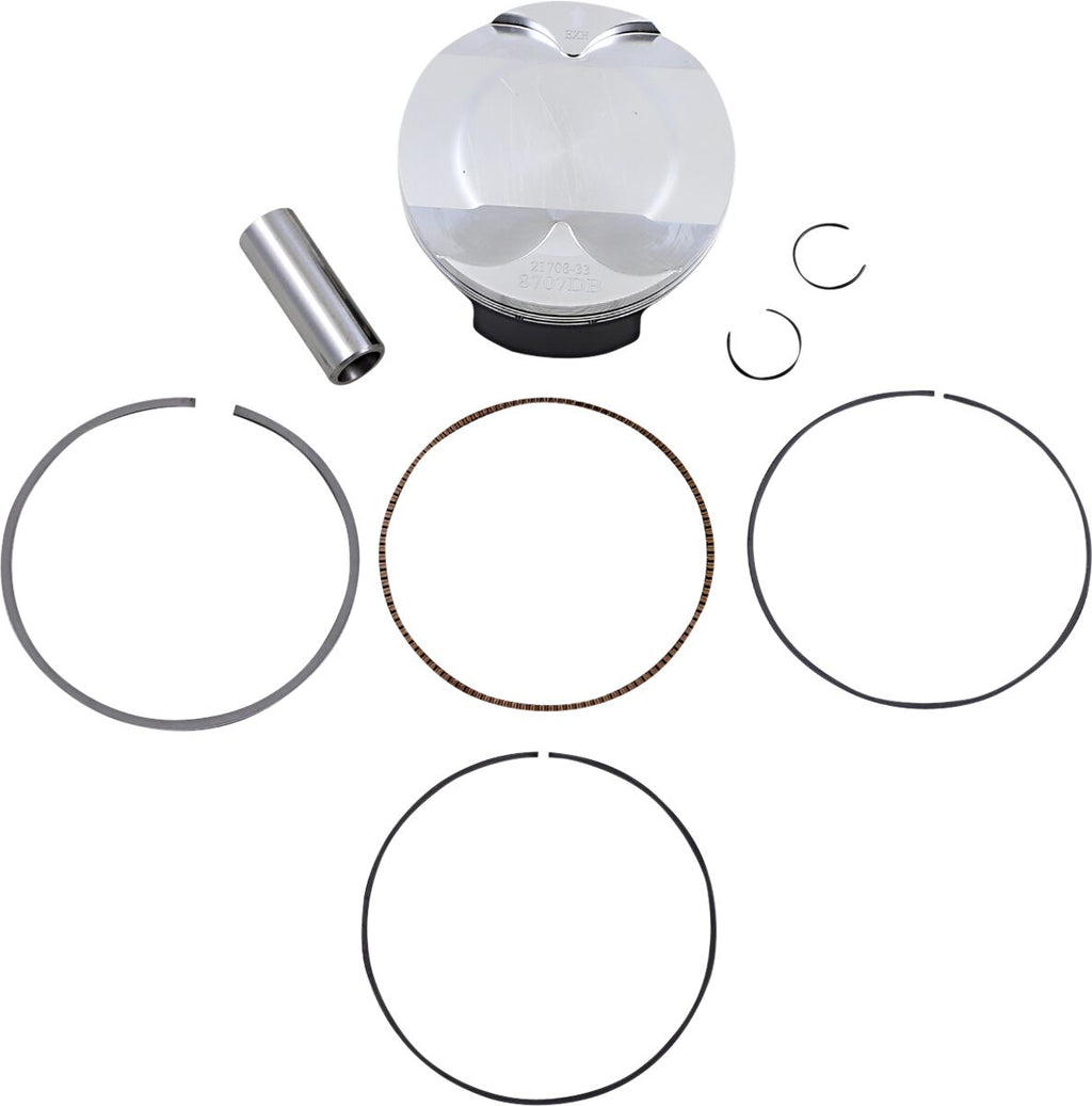 Piston Kit for 4 StrokeEnhanced piston pin oiling slots, radial boss machining, and annular grooves for improved wrist pin lubrication Lightweight piston with a tight piston wall clearance for a quieter running engine Skirt coated for reduced friction and improved break in performance Ring land treatment for improved ring seal and oil control Double bridged forging design where noted Kit includes piston, rings, wrist pin and pin locks Two ring design.