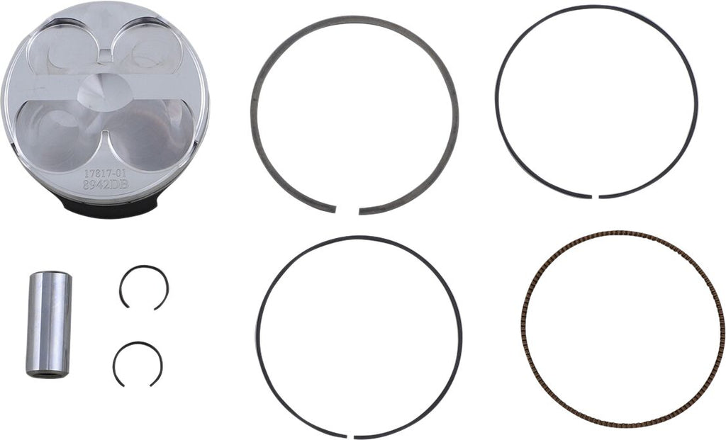 Piston Kit for 4 StrokeEnhanced piston pin oiling slots, radial boss machining, and annular grooves for improved wrist pin lubrication Lightweight piston with a tight piston wall clearance for a quieter running engine Skirt coated for reduced friction and improved break in performance Ring land treatment for improved ring seal and oil control Double bridged forging design where noted Kit includes piston, rings, wrist pin and pin locks Double bridge forging.