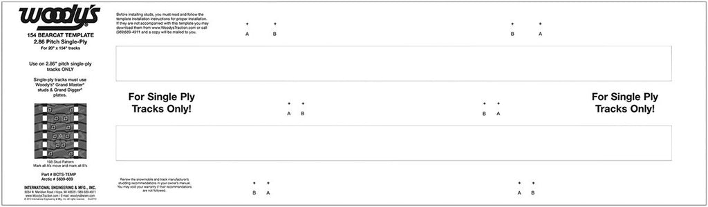 • Stud patterns on Woody's® templates are CAD-designed to maintain track balance