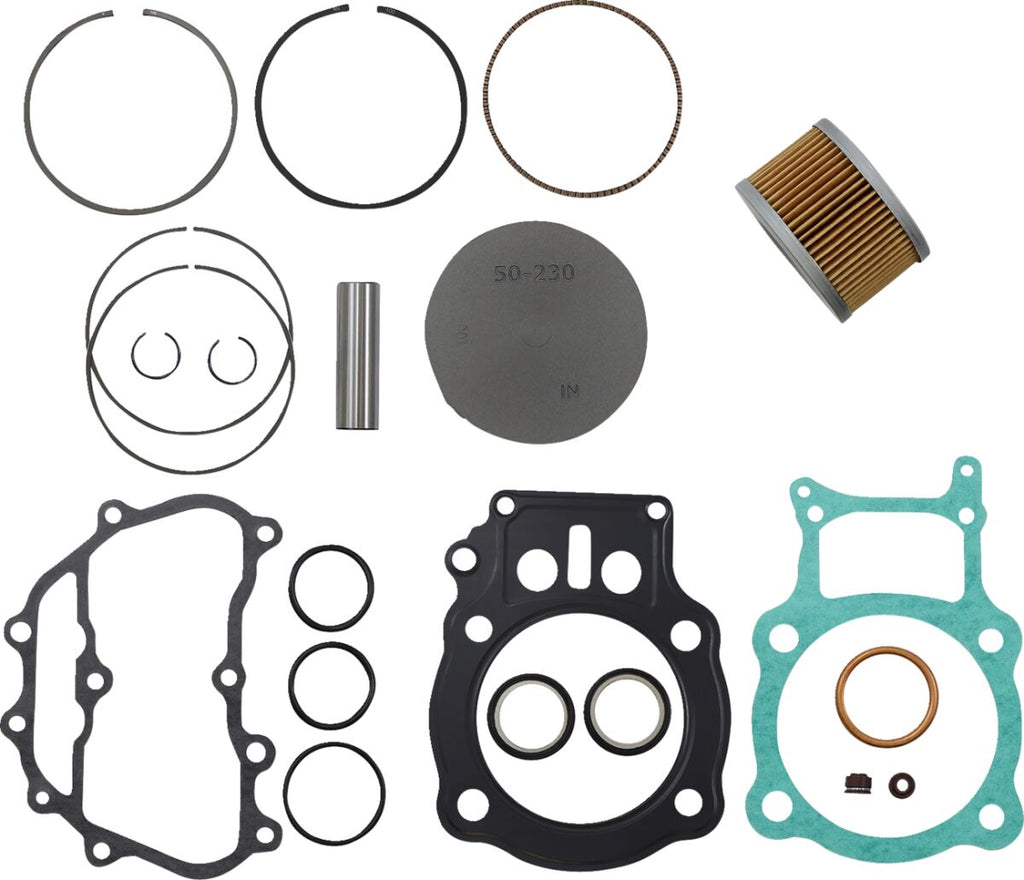 • Includes pistons, rings, pins, clips, head and base gaskets and intake and exhaust gaskets and oil filter for 4-stroke models