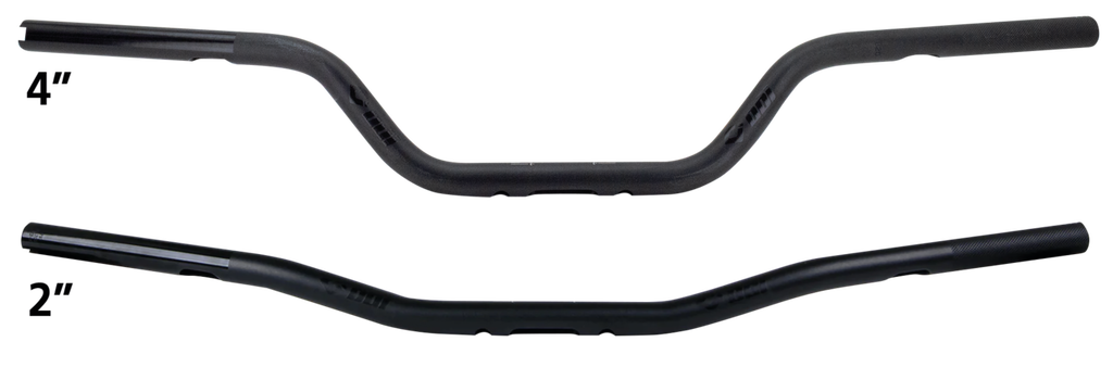 Motocross technology in a V-Twin handlebar. These hard anodized aluminum handlebars are slotted for internal wiring and notched for Throttle-By-Wire. The clutch side is knurled for improved grip adhesion.