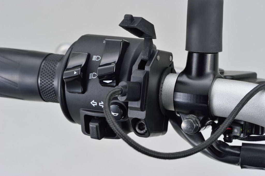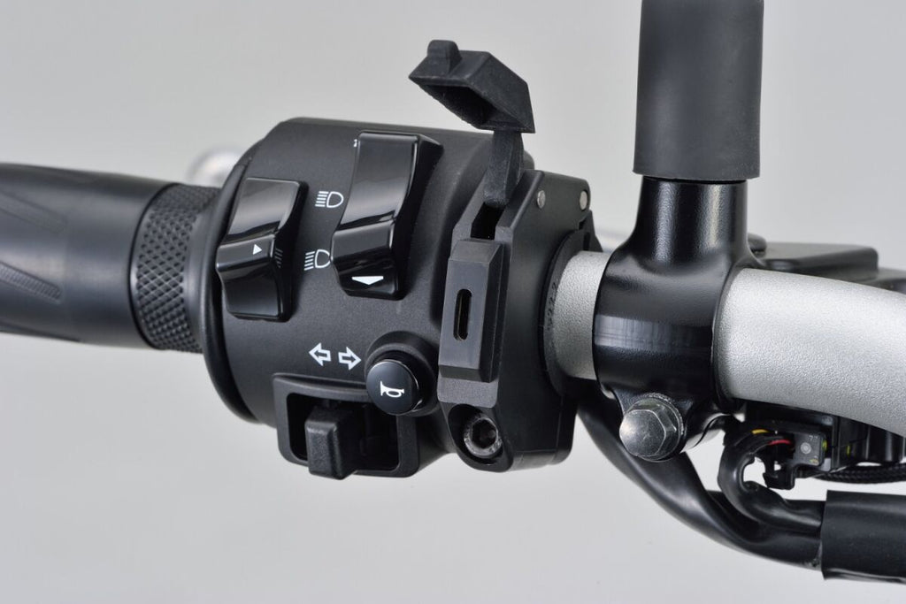 • Slim Mount Type-C for USB PD(Power Delivery). Work with main switch. Input DC12V. Output 5V/3A, 9V/2A, 12V/1.5A Max. 18W. For 22.2mm/25.4mm handlebar, housing thickness 11mm.
