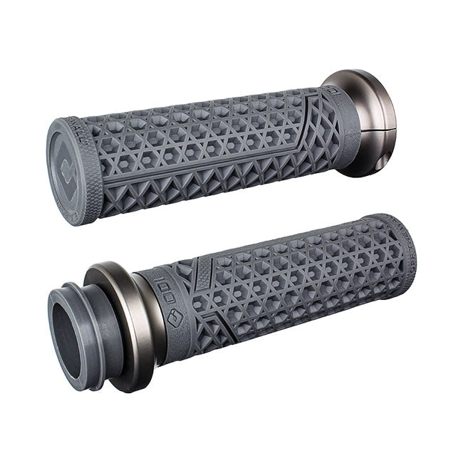 ODI V-Twin Lock-On Grips Vans Signature Tbw Graphite - Specifically designed for 1" handlebars (at the grips) - Reinforced Waffle Pattern on top provides palm pad for extra comfort - Classic Waffle Pattern on bottom delivers excellent finger traction - Clutch Side Billet Alloy Lock-On™ Clamp delivers 100% slip-free security - T15 Torx bolts provide extra secure clamping for solid, twist-free mounting - Eliminates the need for grip glue or safety set-screws - Provides simple installation and removal - Complete with throttle sleeve to ease installation - Proprietary Medium-Compound durometer hardness improves overall comfort and durability - Length: 130mm Overall Grip Length including flange 08-24 H-D with e-throttle (excl. 11-17 Softail CVO models / 23-24 FLHXSE / 2024 FLHX / 2024 FLTRX / 18-24 FLTRXSE / 2024 FLTRXSTSE / 21-24 RA Pan America & RH models)